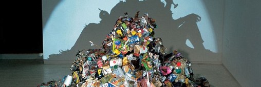 Pour l’oeuvre « White Trash« , le duo a utilisé six mois de déchets ménagers ainsi qu’un « couple » de mouettes mortes. Rien que ça ! Si le résultat ne ressemble a rien d’autre qu’un tas de déchets au premier regard, là est la performance des artistes. Une fois la lumière projetée d’un côté des déchets, l’ombre des deux artistes apparaît sur le mur. Il s’agit d’un autoportrait des artistes, fumant et buvant un verre de vin.
