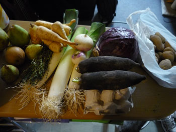 Un panier de légumes de saison au mois de décembre en France c’est plutôt ça : équilibré et varié. Pas de courgettes, tomates ou autres.