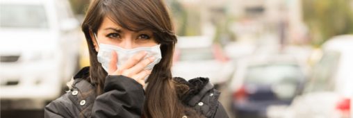 Illustration bannière : Femme se masquant le visage à cause de la pollution – © Fotos593