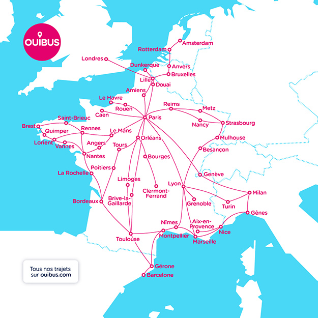 Exemple concret : la compagnie OuiBus, filiale de la SNCF, permet aujourd’hui à elle seule de voyager vers plus de 300 destinations en France et en Europe, à partir de seulement 5 euros l’aller simple.