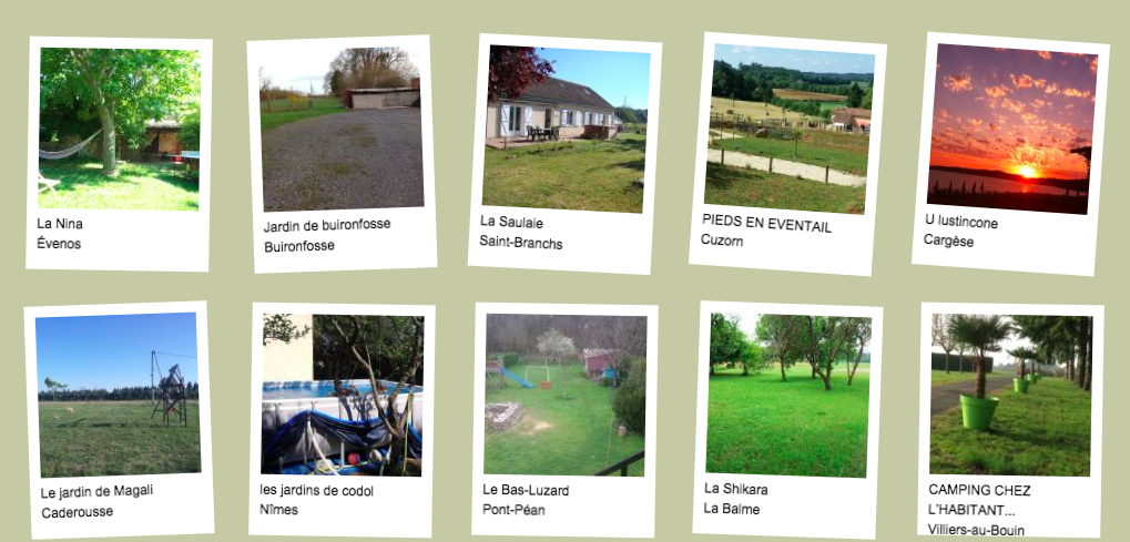Où est-ce que je campe ce soir ? Les fiches des jardins particuliers