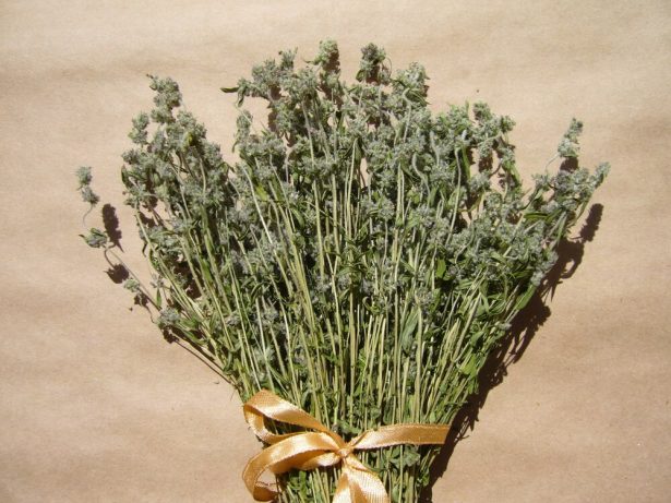 - Réduisez ce bouquet de plantes en poudre, avec un mortier ou un moulin à café.