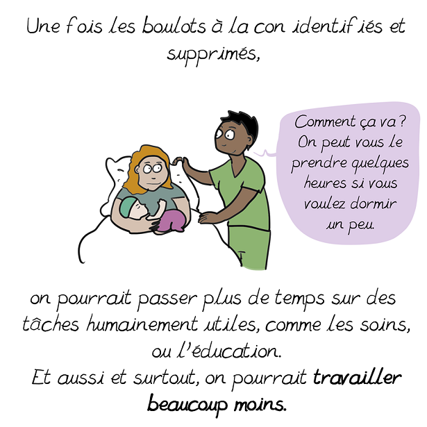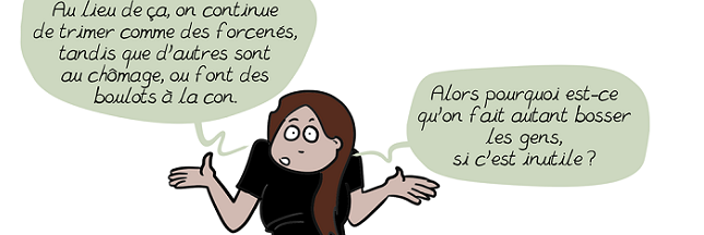 Des jobs pour lesquels on s’épuise, on se stresse, à cause desquels on n’a pas le temps de passer du temps avec nos proches, et qui n’apportent finalement rien à la société (sauf de gonfler le PIB).