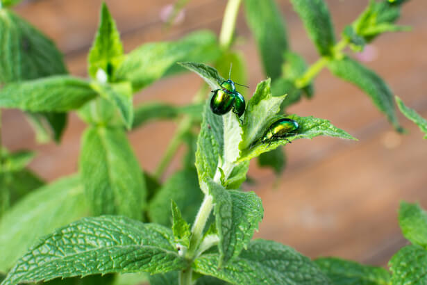 La menthe produit des fleurs qui ne sont pas sans intérêt mellifère, mais la menthe est également consommée par des insectes, les chrysomèles, qui comme on l’a vu pour le millepertuis, ont toutes leur place dans la chaîne alimentaire.