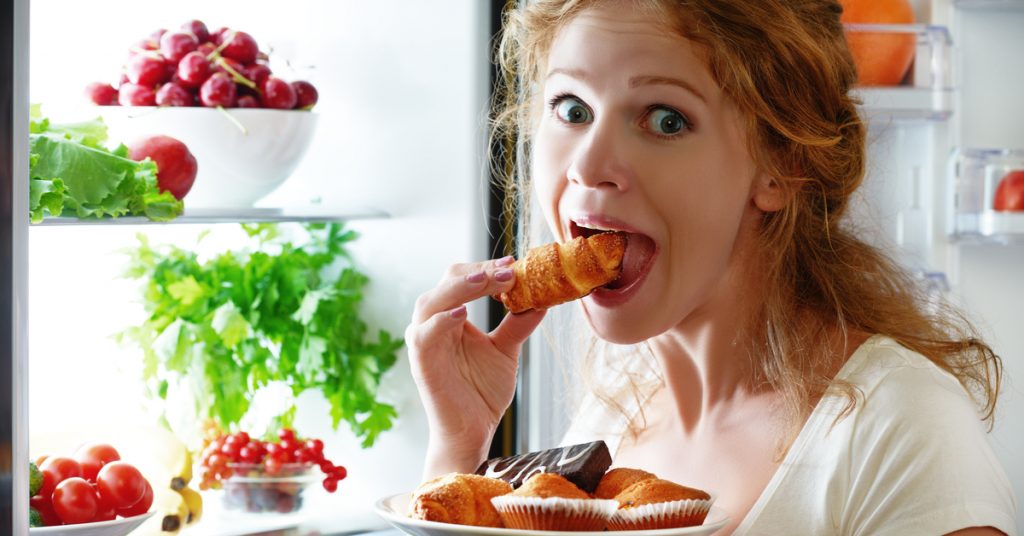 Et surtout prêt à manger, que dis-je, à dévorer tout ce qui vous tombe sous la main : petits gâteaux, chocolat, fromage, saucisson, mélanges apéritifs… Tout est bon pour calmer cette faim irrépressible. Et pas question de déguster lentement, vous vous jetez sur ces « en-cas ».