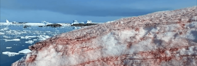 Illustration bannière : La neige devient rouge sang en Antarctique – Capture d’écran Youtube