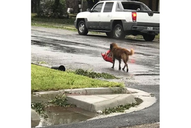 La meilleure photo du cyclone Harvey : sur Twitter, on a vu une photo d’un chien qui s’enfuit avec son paquet de croquettes dans la gueule, avec le hashtag #refugee. Le propriétaire, qui cherchait son chien, l’a retrouvé grâce aux réseaux sociaux.