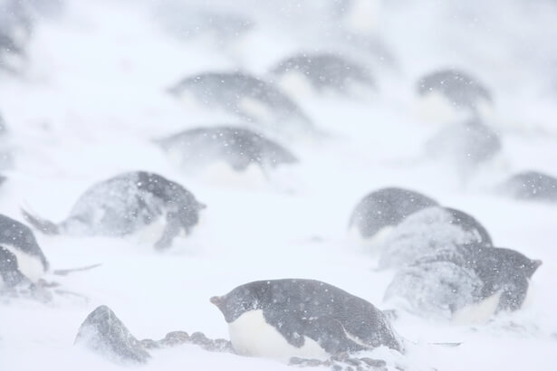 Les manchots Adélie sont des animaux que les hausses de températures impactent directement, non seulement parce que leur milieu de vie est majoritairement constitué de glace, mais aussi parce que les températures ambiantes et les précipitations peuvent leur rendre la vie très dure.