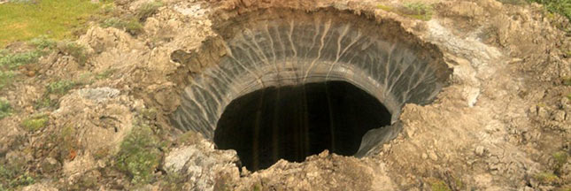 Été 2015, une équipe de chercheurs russes localise plusieurs cratères de 80 mètres de diamètre dans la région de Yamal, en Sibérie. Ces cratères seraient le résultat direct du réchauffement climatique, la hausse des températures entraînant un dégel inhabituel du permafrost, ou pergélisol, ce sol sensé rester gelé en permanence, et libérant le méthane emprisonné jusque là dans la glace. Le risque d’un emballement du phénomène du réchauffement climatique est réel.