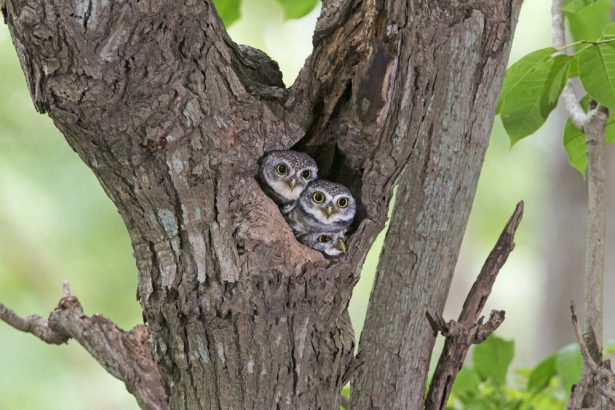 Un nid de hiboux au creux d’un arbre © Nuwat Phansuwan