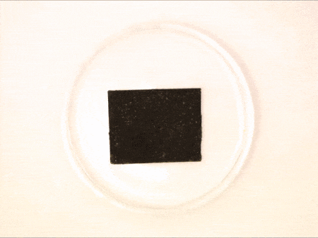 Un morceau de plastique PDK dans de l’acide alors qu’il se dégrade en monomères © Peter Christensen / Berkeley Lab