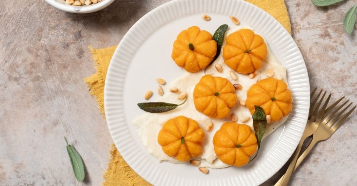 - Formez des petits gnocchis – pourquoi pas assemblés pour créer une forme de courge ! – et faites-les cuire dans de l’eau bouillante salée jusqu’à ce qu’ils remontent à la surface.