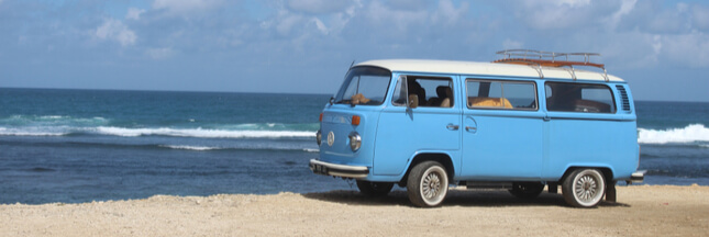 Illustration bannière : Combi VW sur une plage – © krishnaobhasa / Shutterstock
