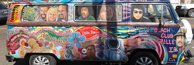 Certains ont fait des combi T2 Volkswagen de véritables oeuvres d’art en hommage, ou pas, au mouvement hippie, décorés de fleurs ou d’autres ornements.