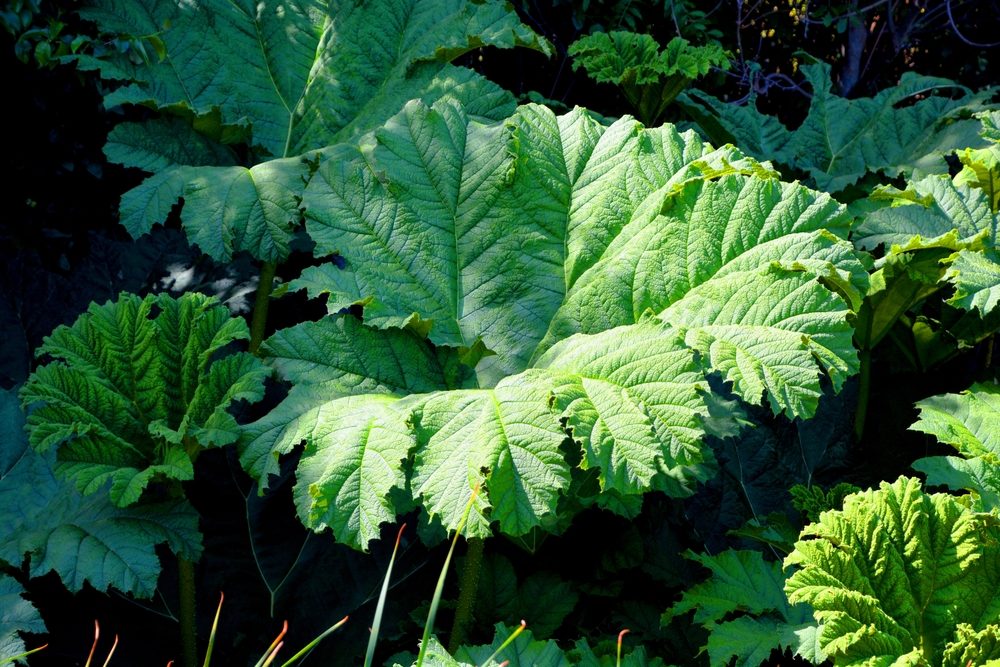 Son apparence exubérante et majestueuse, comparable aux fougères arborescentes des temps anciens, transporte l’observateur dans un voyage à travers le temps, à une époque où la terre était dominée par de gigantesques créatures et des plantes démesurées. Les feuilles du Gunnera, profondément nervurées et lobées, s’étalent comme de vastes parapluies, créant un spectacle impressionnant qui évoque des paysages dignes d’un décor de film sur les dinosaures.