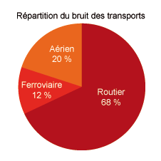 Le bruit provient majoritairement des transports : routier, ferroviaire et aérien en tête.