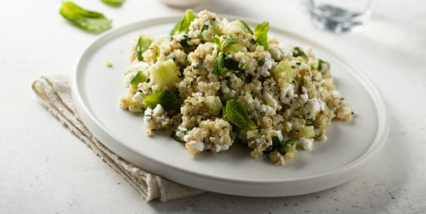 Cette dernière salade est un peu plus exotique. La salade de concombres au quinoa à la sauce perse est parfaite pour 4 personnes. Vous aurez besoin de :