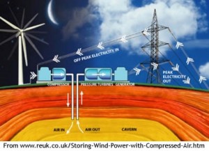 Enfin! on commence à aborder les vrais problèmes posés par les énergies dites renouvelables: Le stockage!… On découvre, enfin que ces énergies sont (très!) alternatives, et que si on ne peut pas les stocker, on ne pourra pas les utiliser pratiquement!… Le seul stockage de grandes quantités d’énergie actuellement opérationnel est le barrage de pompage (type Grandmaison) qui restitue, en heures de pointe, l’énergie produite en heures creuses. Les autres procédés sont à l’étude, mais aucun n’est vraiment opérationnel, pour l’instant, du moins à l’échelle industrielle!