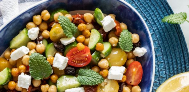 Les pois chiches sont riches en protéines et en fibres, le concombre est réhydratant et la menthe apporte une touche de fraîcheur.