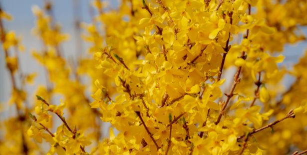 Le Forsythia est un arbuste à feuilles caduques qui peut atteindre 6 mètres de haut. Il possède des fleurs jaunes qui fleurissent au début du printemps, parfois dès la fin de l’hiver. L’arbuste à croissance rapide préfère le plein soleil et un sol bien drainé.