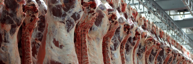 Illustration bannière : Carcasses bovines dans un abattoir – © Food and Photo