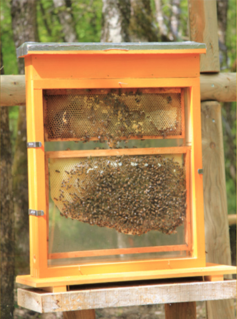 Une des ruches possède une vitre vous permettant d’observer directement l’intérieur. Un zoom dans le monde minuscule.