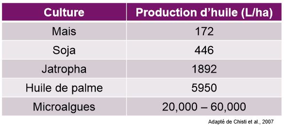 3 – à partir des micro-algues, produit de 20 à 60 m3/ha.