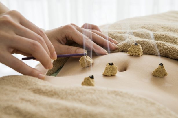 Quant à la moxibustion, elle consiste à brûler des plantes chinoises – généralement de l’armoise séchée – à 1 ou 2 cm au-dessus de la peau, sur les points d’acupuncture, afin de renforcer l’effet thérapeutique.