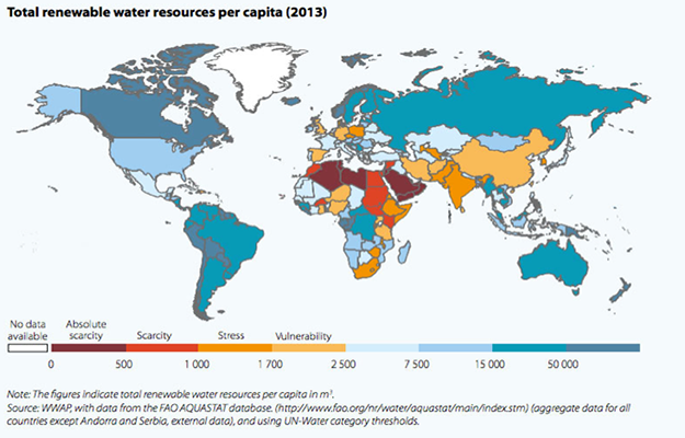 D’après l’Organisation des Nations Unies : en 2030, 47 % de la population mondiale vivra dans des zones à approvisionnement difficile en eau potable. Par ailleurs, l’eau sur Terre se trouve à 97 % sous forme d’eau salée, et seulement 2 % sous forme de glace ou de neige et moins de 1 % des réserves d’eau douce sont présentes sous forme liquide.
