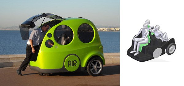 franchement trés moche de plus s assoire a l arriere a contre sens je trouve cela horrible la voiture a 3 roue a été abandonner trop dangereux la roue avant tombe dans un trou et se retrouve desequilibrer c est bien pour ca que les atc (moto a 3 roue ont été arreter )sinon la voiture a air comprimer pourquoi pas mes bon depuis les année 2000 on en parle mais pour voir se resultat je trouve cela ridiccule
