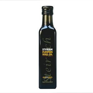 Styrian pumpkin Seed Oil : tel est le nom de l’huile de graines d’une variété de potirons cultivés exclusivement en Styrie (région autrichienne) et conçue par la société Wolf Naturprodukte.