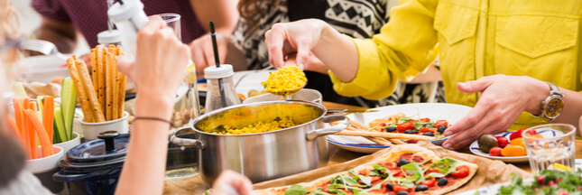Illustration bannière : Amis partageant un repas vegan © Photographee.eu