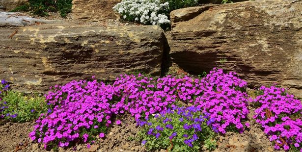 Si toutes les natures de roches peuvent convenir pour créer une rocaille, préférez n’utiliser qu’une seule variété de pierre pour un aspect plus uniforme. Vous pouvez en revanche varier les tailles comme les formes. Pour décorer les rocailles, privilégiez des plantes dites de rocaille, majoritairement adaptées aux sols pauvres et secs.