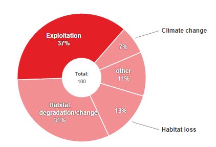 Les causes de disparitions de 3430 espèces sauvages distinctes telles que mesurées par le Living Planet index :