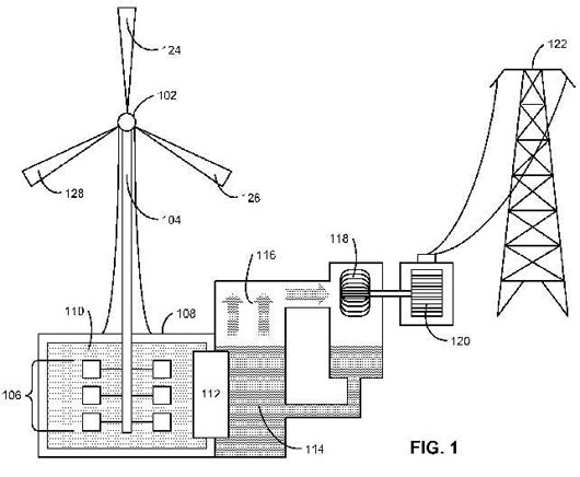 Le brevet, enregistré sous le titre « On-Demand Generation of Electricity from Stored Wind Energy » concerne un système éolien qui permet de stocker l’énergie et de la produire à la demande. L’énergie fournie par le vent serait stockée sous forme de chaleur grâce à un fluide caloporteur sous forme de joules.