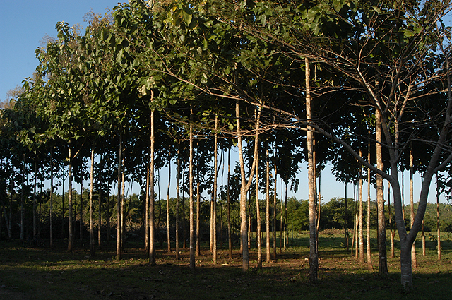 Les peuplements de forêt sont rarement purs, contenant généralement 80 % de teck en surface.