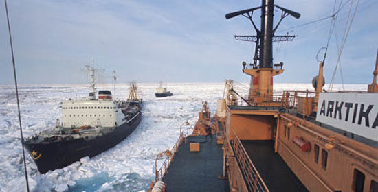 Des convois s’organisent derrière les brises-glace russes ou canadiens.
