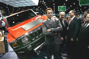 L’homme met régulièrement à l’honneur les constructeurs automobiles qui lancent des modèles électriques ou hybrides. Et le gouverneur montre l’exemple en conduisant un Hummer, voiture connue pour être très polluante, mais hybride !