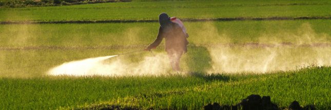 Illustration bannière : Utilisation de pesticides dans un champ de riz – © Kitzero