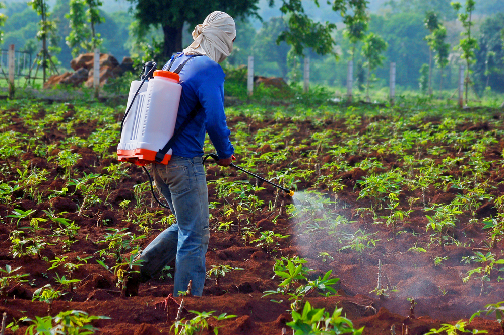 Un agriculteur asperge son champ de pesticides © iamlukyeee
