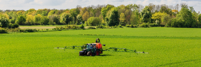 Illustration bannière : Un agriculteur qui pulvérise des pesticides – © GerDuess