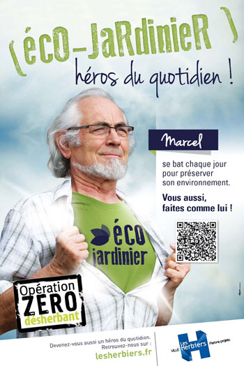Après des campagnes choc, et d’autres sur un ton plus léger (voir Les Herbiers, commune sans pesticide), cette année ce sont les Herbretais qui sont mis à l’honneur. Marcel, Yannick, Christian et Tino, héros du quotidien, ont fait le choix du jardinage au naturel. Leur mission : « prêcher la bonne parole » au travers d’une campagne d’affichage à l’humour décalé.