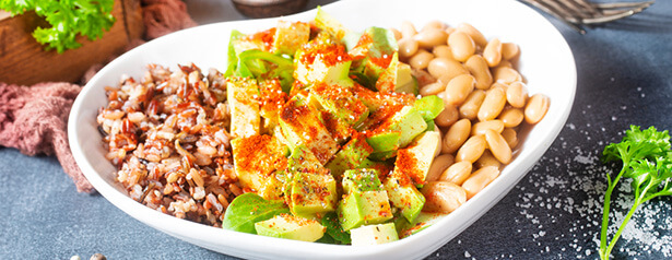 Fruits et légumes, céréales et légumineuses, graines et fruits à coque, herbes et épices, huiles et ghee (beurre clarifié) composent les repas ayurvédiques. L’ajout de laitages et d’oeufs reste possible. Concernant la viande et le poisson, les prises doivent demeurer occasionnelles. En effet, les protéines animales sont souvent difficiles à digérer ; de plus, le bien-être animal est un principe de base dans la philosophie ayurvédique. Associer dans vos repas une céréale (riz, sarrasin…) à une légumineuse (lentilles, pois chiches…) permettra de couvrir vos besoins en protéines.