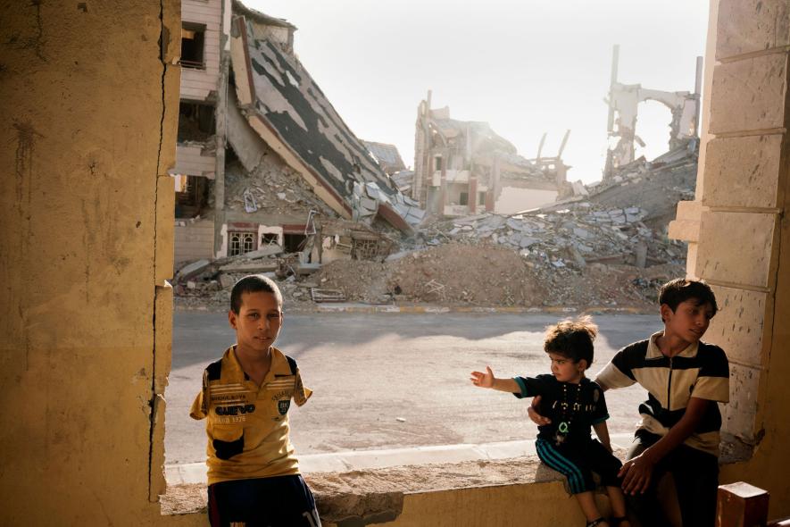 Le photographe a capturé une scène d’enfants réfugiés au milieu des décombres de Ramadi, en Syrie. La ville a été détruite par la guerre civile. Les morts et les blessés ne se comptent plus, tel cet enfant qui a perdu ses deux bras.