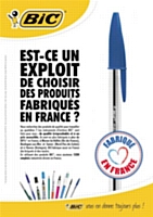 Bic mise sur le “made in France”« Est-ce un exploit de fabriquer dans nos régions ?” s’interroge la célèbre marque des « stylos Bic ». C’est en tout cas la question de la campagne du fabriquant de stylos, briquets et rasoirs pour valoriser sa production dans des usines françaises.