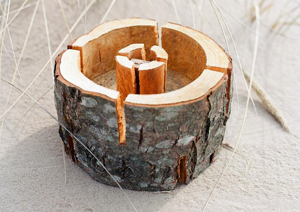 Trois amis d’enfance passionnés par la nature et les voyages ont eu l’idée, durant un voyage en Lettonie, d’améliorer l’idée de deux frères forestiers : un barbecue de fortune créé dans une souche d’arbre afin d’obtenir un système :