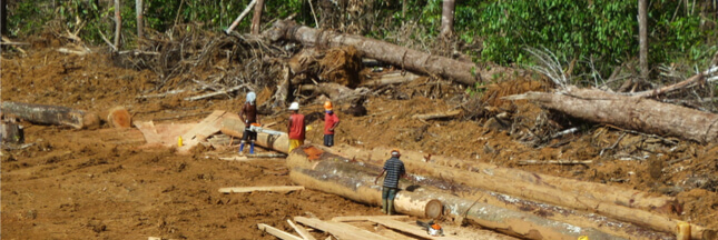Illustration bannière : Coupe de bois dans la forêt amazonienne – © kakteen