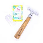 Rasoir de sécurité en bois de chêne français et ses 10 lames en acier inoxydable : idéal pour un rasage traditionnel et Zéro Déchet !