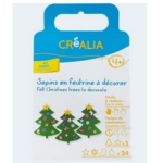 3 silhouettes de sapin en feutrine et un Lot de formes à coller (étoiles, flocons, boules…)