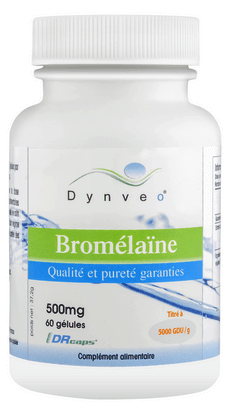 Au vu de ses caractéristiques santés particulièrement intéressantes, on l’utilise principalement comme complément alimentaire. Il est dès lors très important de choisir une bromélaïne d’un très bon rapport dosage / activité enzymatique, celle de Dynveo® qui se distingue par son haut degré de pureté (dosage de 500 mg par gélule et activité enzymatique > 5.000 GDU/g) et a fait l’objet de différentes études indépendantes. De plus elle est gastro-résistante, ce qui est une condition sinequanone pour ne pas être hydrolysée et ainsi rester active.